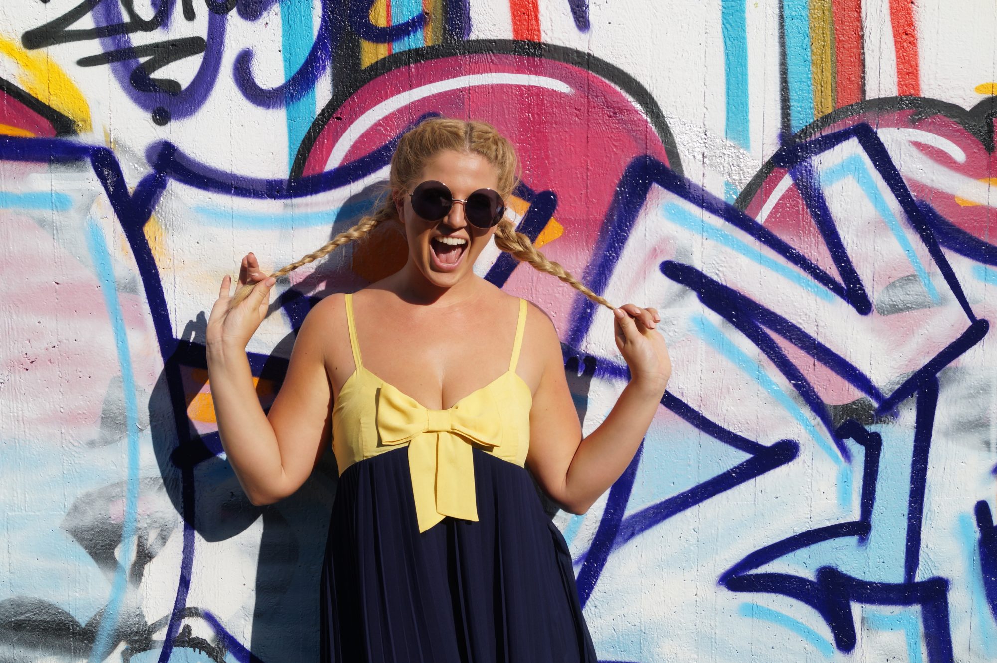Ich weiß noch, als ich das Kleid einmal anhatte und mir einer gesagt hat, ich solle einen richtigen Bh darunter tragen. Aber ich finde das würde den Look stören und wer hat schon zufällig einen gelben Bh in genau dieser Farbe zuhause? Ich jedenfalls bevorzuge da andere Farben 😉