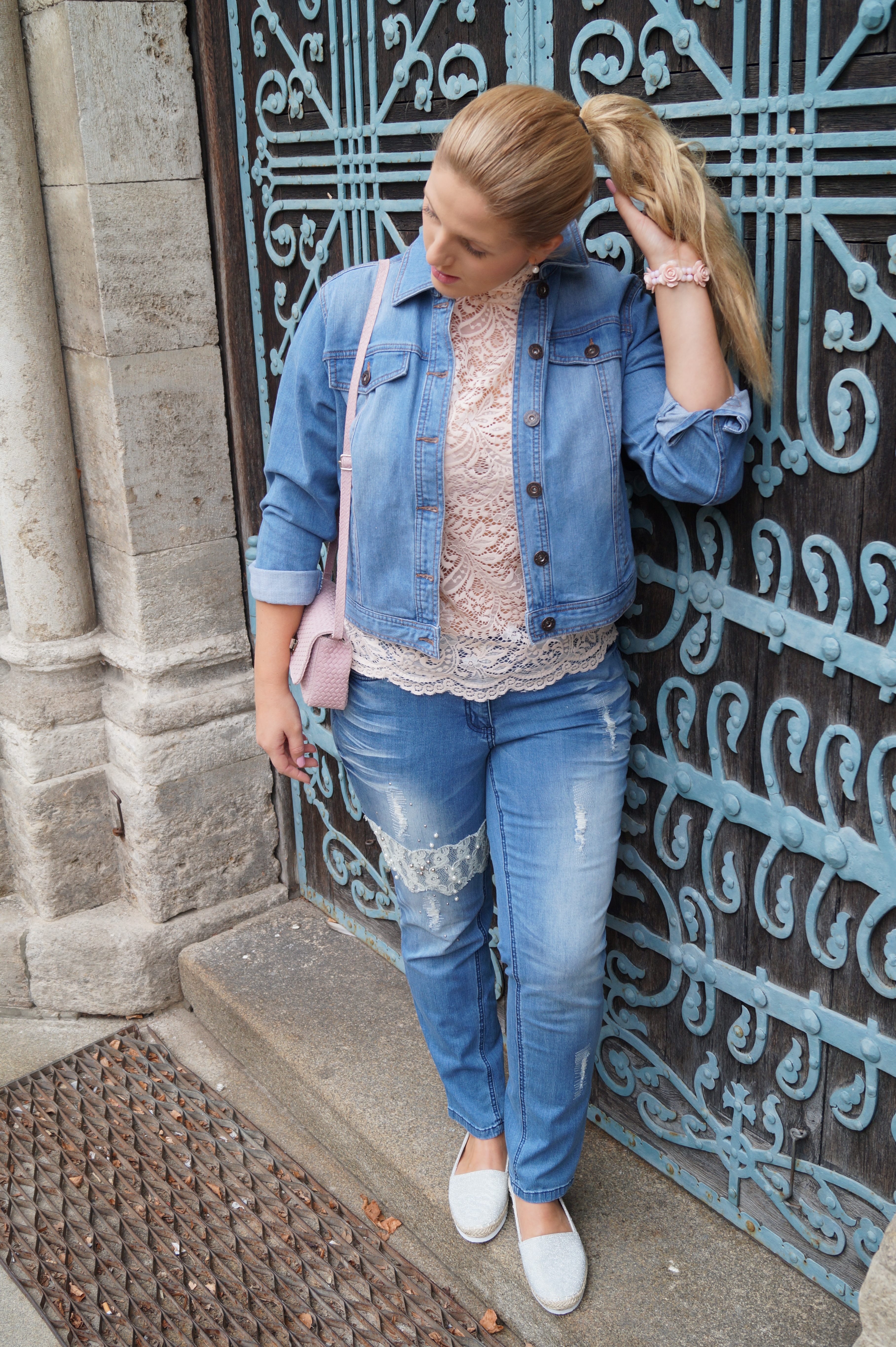 Die Jeans habe ich nach meinem Happy Size Shooting bei Curvy Supermodel mitnehmen dürfen, vielen Dank dafür! Dazu kombiniere ich die stylishe Jeansjacke von Studio Untold und das durchsichtige Spitzenshirt von Vero Moda. In Zukunft findet ihr auch direkte Links die euch direkt zu den heißen Teilen führen. Habt noch ein wenig Geduld und Nachsehen mit mir, ich bin ja noch brandneu 🙂