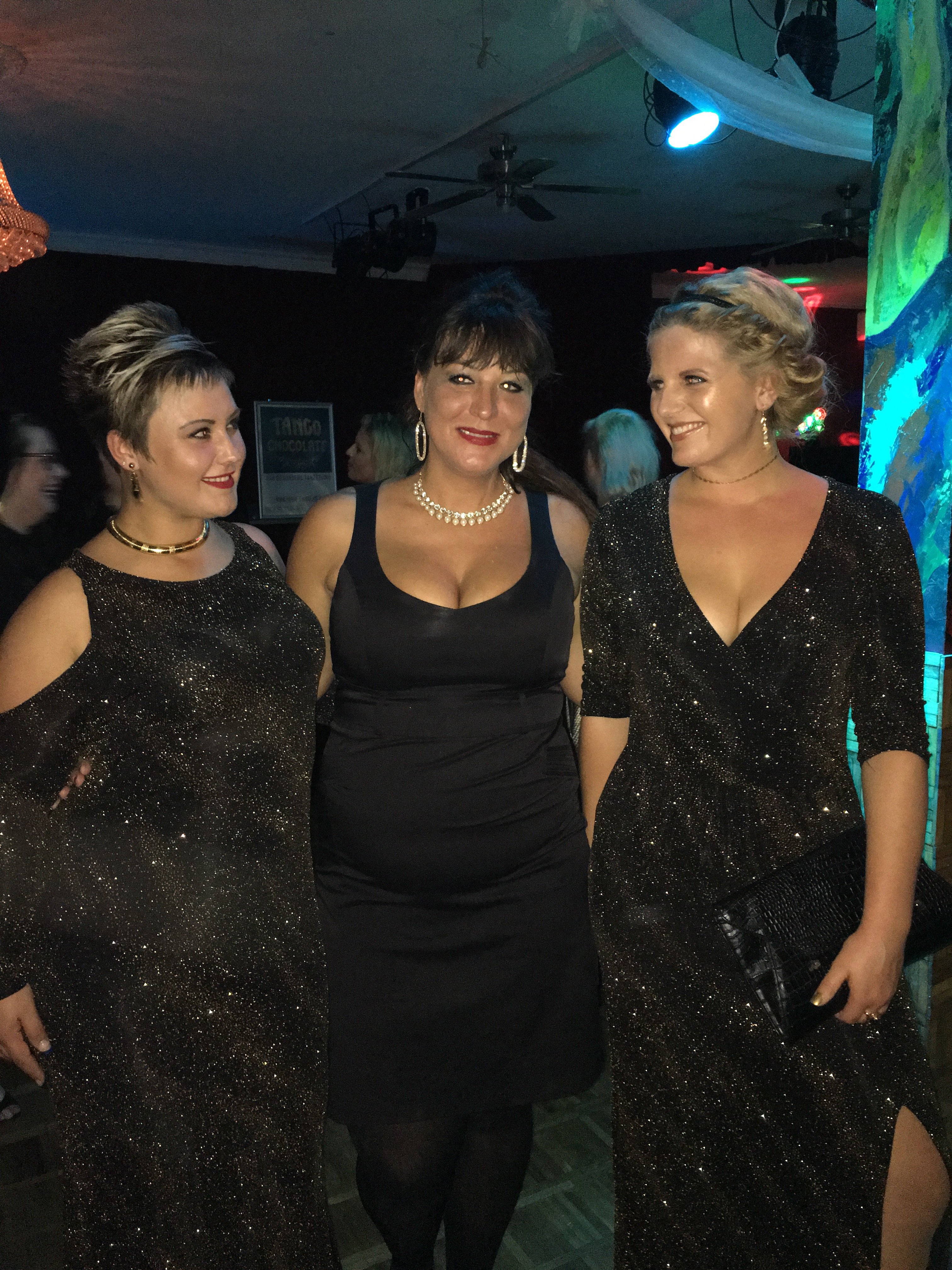 Freitag Abend war es dann soweit : Die große Eröffnungsparty der Plussizefashiondays wurde gebührend unter dem Motto ‚Black, Gold and all that Glitters‘ im Tango Chocolate in Hamburg gefeiert. Ich habe das Motto natürlich sehr ernst genommen und mich in ein schwarz-gold glänzendes Kleid mit passendem Schmuck, Tasche und Goldglitzer-Makeup gehüllt.